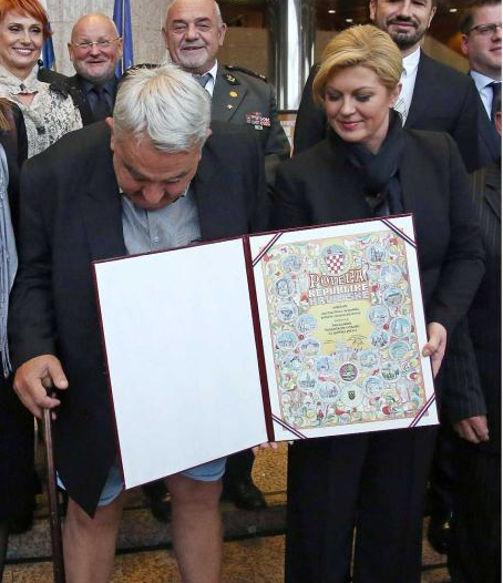 Μία άτυχη στιγμή είχε ο επικεφαλής της οργάνωσης για τα ανθρώπινα δικαιώματα στην Κροατία, Ιβάν Ζβόνιμιρ Τσίσακ, κατά τη διάρκεια βράβευσης του από την Πρόεδρο της χώρας, Κολίντα Γκράμπαρ Κιτάροβιτς.