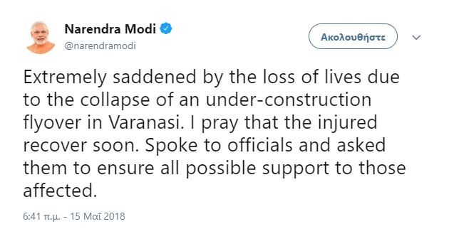 Τουλάχιστον 18 άτομα έχασαν τη ζωή τους, έπειτα από κατάρρευση υπό κατασκευής γέφυρας, στο Βαρανάσι, της βόρειας Ινδίας.