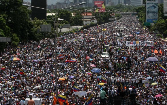 Στο Καράκας τουλάχιστον 160.000 άνθρωποι, σύμφωνα με εκτιμήσεις της αντιπολίτευσης, βρέθηκαν στους δρόμους της πρωτεύουσας, προσπαθώντας να φτάσουν στο υπουργείο Εσωτερικών, με τις δυνάμεις ασφαλείας να κάνουν χρήση δακρυγόνων.