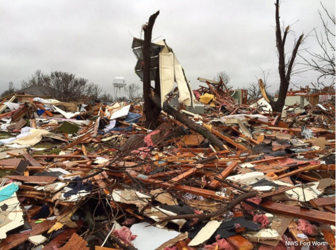 Τουλάχιστον 11 άνθρωποι έχασαν τη ζωή τους στην περιοχή του Ντάλας, Τέξας, από τις καταρρακτώδεις βροχές και τους ανεμοστρόβιλους που ισοπέδωσαν σπίτια, έκοψαν γραμμές ηλεκτροδότησης και προκάλεσαν πολλά προβλήματα στην κυκλοφορία την ώρα που πολλοί ταξιδιώτες επέστρεφαν στις εστίες τους μετά το τριήμερο των Χριστουγέννων. Τουλάχιστον 600 κτίρια στο βόρειο Τέξας έχουν υποστεί σοβαρές ζημιές.