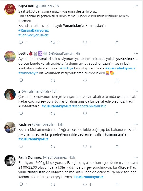 Όπως ήταν λογικό η δήλωση Ερντογάν προκάλεσε αντιδράσεις, καθώς συνέπεσε και με την Παγκόσμια Ημέρα Μουσικής (21/6) με αποτέλεσμα χιλιάδες χρήστες των social media να εκφράζουν την αντίθεση τους με το #KusuraBakıyoruz. Καλλιτέχνες, πολίτες, αλλά και πολιτικοί αντίπαλοι τοποθετήθηκαν επί του θέματος με το πλέον χαρακτηριστικό παράδειγμα να είναι αυτό του επικεφαλής της Αξιωματικής Αντιπολίτευσης, Κεμάλ Κιλιτσντάρογλου. «Εμείς το λέμε εξ’ αρχής ότι αυτές οι απαγορεύσεις έχουν ιδεολογικό φορτίο», σχολίασε ο ηγέτης του κεμαλικού Ρεπουμπλικανικού Λαϊκού Κόμματος, Κεμάλ Κιλιτσντάρογλου. «Αν μιλάς Ερντογάν για ενόχληση, μάθε τότε ότι η χώρα είναι ενοχλημένη μαζί σου. Τι θα κάνεις γι’ αυτό;», συμπλήρωσε.