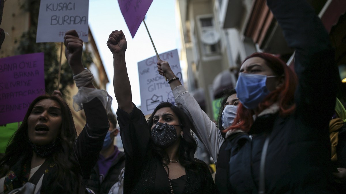 «Ακύρωσε την απόφασή σου, εφάρμοσε τη συνθήκη!» φώναζαν οι χιλιάδες γυναίκες και άνδρες που είχαν συγκεντρωθεί στο Καντίκιοϊ, στην Κωνσταντινούπολη. Οι διαδηλωτές κρατούσαν φωτογραφίες δολοφονημένων γυναικών και πλακάτ όπου είχαν γράψει συνθήματα όπως «Οι γυναίκες θα κερδίσουν αυτόν τον πόλεμο».