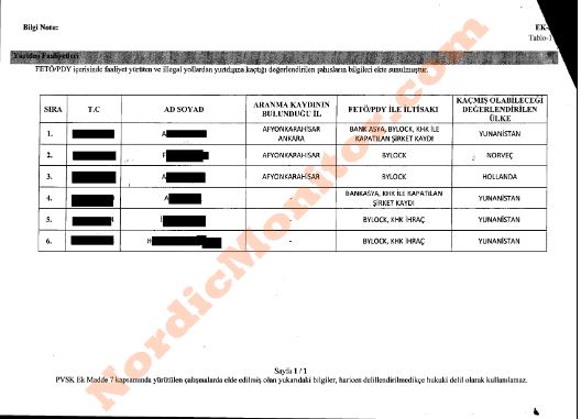 Το έγγραφο υπογράφει ο Ερντογάν Καρτάλ, αναπληρωτής αρχηγός του τμήματος αντιτρομοκρατίας της Emniyet, και εστάλη σε 74 τουρκικές επαρχίες μέσω ενός μυστικού μηνύματος που ζητούσε να αναληφθεί περαιτέρω αστυνομική δράση κατά Τούρκων υπηκόων τους οποίους περιγράφουν οι Τούρκοι διπλωμάτες στο εξωτερικό.
