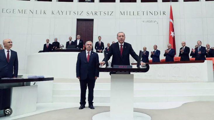 Κάλεσε τους Τούρκους να παραμερίσουν τις διαφορές τους και να επικεντρωθούν στο μέλλον, αναλαμβάνοντας σήμερα τα καθήκοντά του για μια νέα πενταετή θητεία στο αξίωμα. Στην τελετή ανάληψης των καθηκόντων του, στο προεδρικό μέγαρο, ο Ερντογάν υιοθέτησε έναν συμφιλιωτικό τόνο. «Θα αγκαλιάσουμε και τα 85 εκατομμύρια (των Τούρκων), ανεξάρτητα από τις πολιτικές απόψεις τους (…) Ας βάλουμε στην άκρη τη δυσφορία της προεκλογικής περιόδου. Ας αναζητήσουμε τρόπους συμφιλίωσης», είπε, ενώπιον πολλών αρχηγών ξένων κρατών, τους οποίους χαιρέτησε έναν προς έναν. Πρόσθεσε ότι τα 85 εκατομμύρια των Τούρκων πρέπει να ενωθούν «σαν τα τούβλα στον τοίχο», γιατί η χώρα χρειάζεται ενότητα και αλληλεγγύη, περισσότερο από ποτέ άλλοτε.