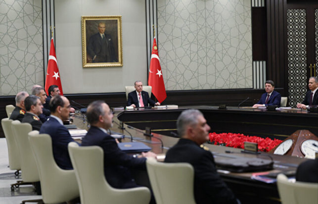 Σύμφωνα με τα ΜΜΕ της χώρας, το συμβούλιο ενημερώθηκε για «τις επιχειρήσεις που πραγματοποιήθηκαν με αποφασιστικότητα, αποφασιστικότητα και επιτυχία στο εσωτερικό και στο εξωτερικό ενάντια σε κάθε είδους απειλές και κινδύνους για την εθνική μας ενότητα και αλληλεγγύη και επιβίωση, ιδιαίτερα των τρομοκρατικών οργανώσεων PKK/KCK-PYD/YPG, FETO και DAESH και για τις πρόσφατες διεθνείς εξελίξεις.»
