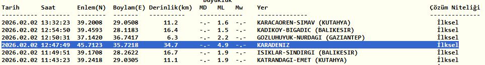 Σύμφωνα με τα δεδομένα της AFAD που επικαλούνται τουρκικά μέσα ενημέρωσης, ο σεισμός είχε μέγεθος 4,7 βαθμών της κλίμακας Ρίχτερ και σημειώθηκε στα ανοικτά των ακτών της Μαύρης Θάλασσας.