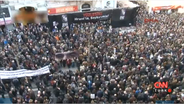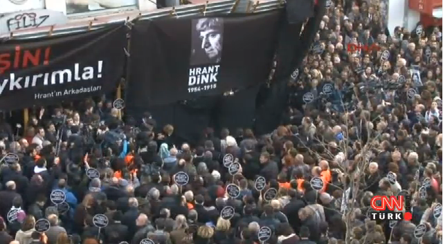Οι διαδηλωτές έκαναν πορεία ως την πλατεία Ταξίμ, όπου εδρεύει η δίγλωσση επιθεώρηση Agos, την οποία διηύθυνε, πίσω από ένα μαύρο πανό στο οποίο αναγραφόταν το σύνθημα «μάθαμε για τη γενοκτονία από τον Χραντ Ντινκ» και κρατώντας πλακάτ με συνθήματα όπως «είμαστε όλοι Χραντ Ντινκ, είμαστε όλοι Αρμένιοι», μετέδωσαν ανταποκριτές του Γαλλικού Πρακτορείου.