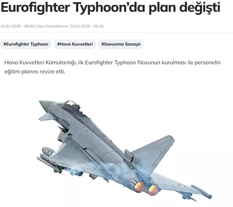 Παράλληλα, η εφημερίδα Milliyet εστιάζει κυρίως στις εξελίξεις στον τομέα της αεροπορικής ισχύος και στον επανασχεδιασμό του προγράμματος για τα μαχητικά Eurofighter Typhoon.