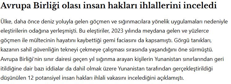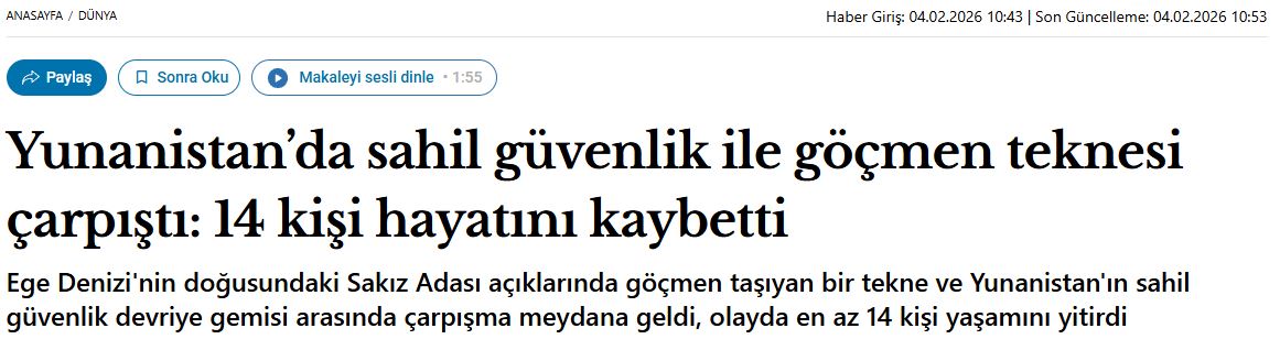 Το τουρκικό Μέσο, παράλληλα, αναφέρει ότι η Ελλάδα έχει κατηγορηθεί στο παρελθόν για τη μεταχείριση μεταναστών και αιτούντων άσυλο, με αναφορά στη ναυτική τραγωδία του 2023 και στις έρευνες της Ευρωπαϊκής Υπηρεσίας Συνόρων για πιθανά ανθρώπινα δικαιώματα που παραβιάστηκαν.