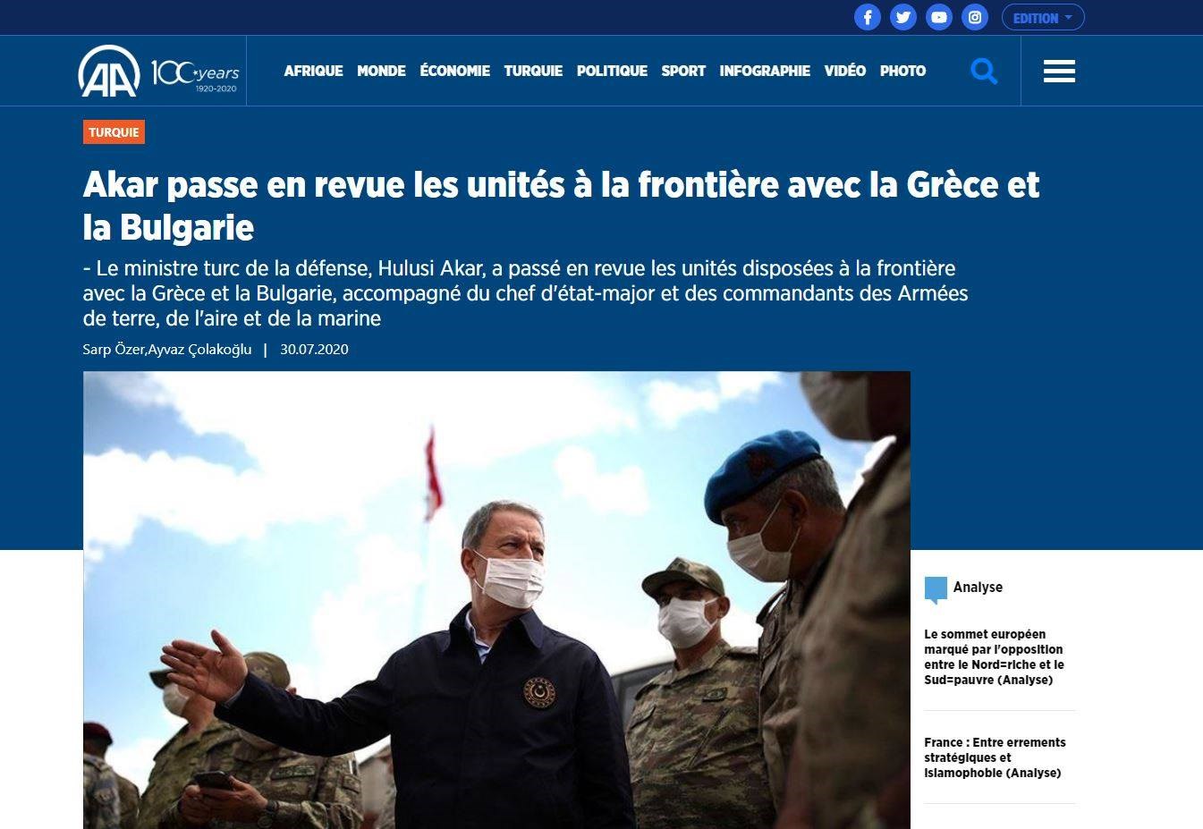 Στα σύνορα της Τουρκίας με την Ελλάδα και τη Βουλγαρία βρίσκεται ο Τούρκος υπουργός Άμυνας, Χουλουσί Ακάρ, όπως μεταδίδουν τουρκικά Μέσα Μαζικής Ενημέρωσης. Όπως υποστηρίζουν χαρακτηριστικά, ο Ακάρ μετέβη στα σύνορα μαζί με στελέχη της τουρκικής Διοίκησης Ενόπλων Δυνάμεων για επιθεωρήσεις στρατευμάτων. Ήδη έχουν αναρτηθεί και οι πρώτες φωτογραφίες από την άφιξη του Ακάρ στην περιοχή στο Twitter.