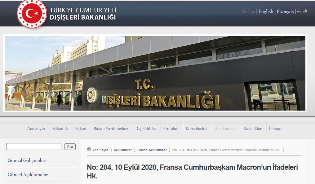 «Αυτή είναι μια απαίτηση της ευρωπαϊκότητάς μας και της συμμαχίας μας στο ΝΑΤΟ. Ο Πρόεδρος της Γαλλίας, με την ατομική και εθνικιστική του στάση, προάγει την ένταση και θέτει σε κίνδυνο τα μεγάλα συμφέροντα της Ευρώπης και της ΕΕ» τονίζεται και καταλήγοντας αναφέρει ότι: «Η Γαλλία που δεν συνορεύει καν με την τη Ανατολική Μεσόγειο και ενεργεί και τώρα αποικιακή νοοτροπία. Είναι ασυνέπεια να κατηγορεί την εξωτερική πολιτική της Τουρκίας που είναι ανθρωπιστική και ειλικρινής για τη συνεργασία. Αφήνουμε στην κρίση του γαλλικού λαού την ανήμπορη κατάσταση που έχει περιέλθει ο Μακρόν, ο οποίος καθημερινά χάνει την υποστήριξη του λαού του».