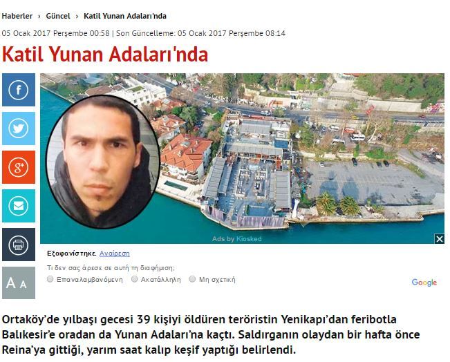 Όπως αναφέρει η εφημερίδα Aksam, ο μακελάρης πέρασε στη θάλασσα του Μαρμαρά, στην περιοχή Μπαντίρμα, από εκεί πήγε στο Μπαλικεσίρ για να φτάσει στις ακτές του Αιγαίου και από εκεί πέρασε στα ελληνικά νησιά.