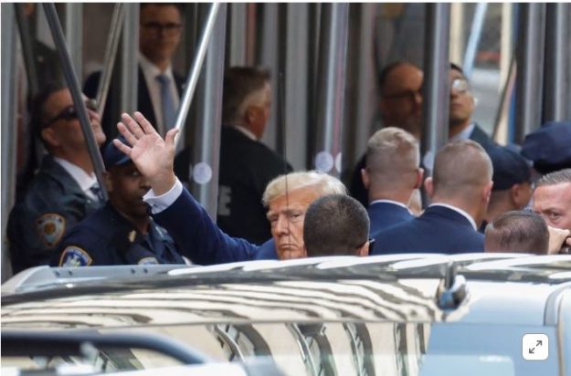 Ο Ντόναλντ Τραμπ έφτασε στο γραφείο του γενικού εισαγγελέα του Μανχάταν Άλβιν Μπραγκ, όπου θα παραδοθεί προτού οδηγηθεί στο δικαστήριο όπου θα του απαγγελθούν κατηγορίες για την υπόθεση εξαγοράς της σιωπής της πρώην πορνοστάρ Στόρμι Ντάνιελς, το 2016.