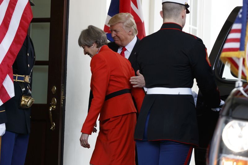Η Μέι, είναι η πρώτη ξένη ηγέτιδα που συναντήθηκε με τον νέο Ρεπουμπλικανό Πρόεδρο. Στην κοινή συνέντευξη Τύπου που παραχώρησαν, ο Τραμπ ανέφερε πως η αποχώρηση των Βρετανών από την Ευρωπαϊκή Ένωση θα προσδώσει μια «ταυτότητα» στην χώρα τους, προσθέτοντας ότι  το Brexit «εντέλει θα είναι ένα θαυμάσιο πλεονέκτημα, όχι ένα τεράστιο εμπόδιο»