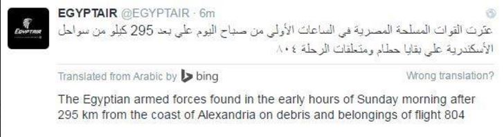 Με ένα tweet, η EgyptAir, ενημέρωσε πριν από λίγα λεπτά τους συγγενείς των επιβατών, ότι οι Αιγυπτιακές αρχές, εντόπισαν προσωπικά αντικείμενα ανοικτά της Αλεξάνδρειας.