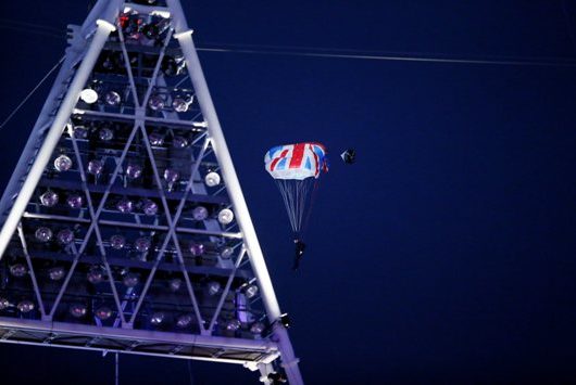 Η αναπαράσταση στους Ολυμπιακούς Αγώνες της πτώσης με αλεξίπτωτο του Σάτον άφησε τις καλύτερες εντυπώσεις. Ακολουθούσε την προβολή ενός βίντεο στο οποίο ο πραγματικός Τζέιμς Μποντ, δηλαδή ο ηθοποιός που τον υποδύεται Ντάνιελ Κρεγκ, επισκέπτεται τα Ανάκτορα του Μπάκιγχαμ για να συναντήσει και να συνοδεύσει την πραγματική βασίλισσα Ελισάβετ στο Ολυμπιακό Στάδιο.