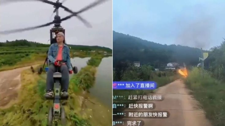 Ο 55χρονος Tang Feiji σκοτώθηκε το Σάββατο, όταν το μονοθέσιο ελικοφόρο του συνετρίβη και τυλίχθηκε στις φλόγες στην κομητεία Jiange, κατά τη διάρκεια ενός βίντεο που μεταδόθηκε live στις σελίδες των προφίλ του στα social media.