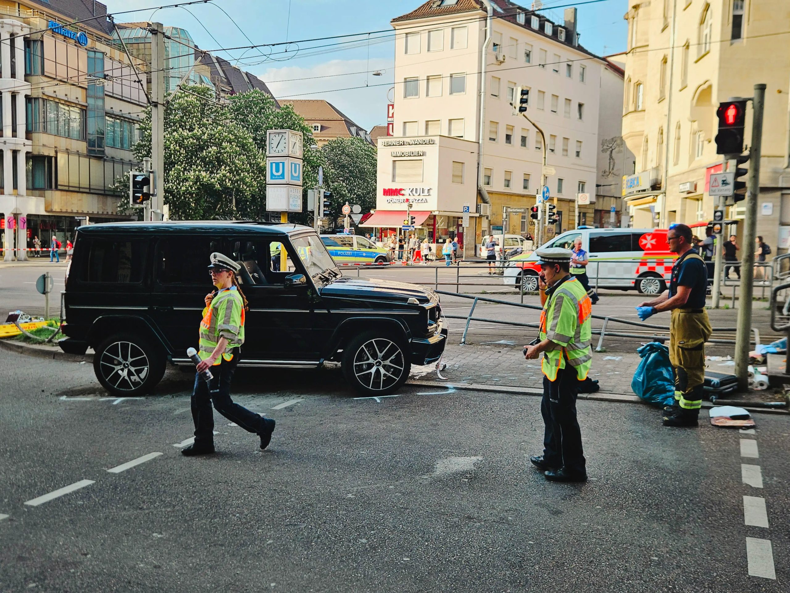 In Stuttgart ist ein Mann in einer schwarzen Mercedes G-Klasse in eine Menschengruppe gerast, es gibt mehrere Verletzte, darunter Schwerverletzte. Auch eine Frau mit Kinderwagen wurde von dem schweren Geländewagen erfasst, sie wird derzeit reanimiert. pic.twitter.com/d7eoBth72y