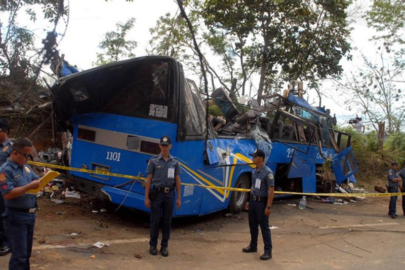Σε τραγωδία εξελίχθηκε η εκδρομή μαθητών στις Φιλιππίνες, όταν το λεωφορείο στο οποίο επέβαιναν, συγκρούστηκε με πυλώνα ηλεκτρικής ενέργειας στην πόλη Τανέι και κατέληξε σε γκρεμό.Σύμφωνα με την αστυνομία, 14 μαθητές έχασαν τη ζωή τους και 40 ακόμη άτομα, τραυματίστηκαν, όταν ο οδηγός του λεωφορείου, που είχε ενοικιαστεί από ένα ιδιωτικό σχολείο της Μανίλα, έχασε τον έλεγχο, συγκρούστηκε με πυλώνα και γλίστρησε εν συνεχεία στον γκρεμό της πόλης Τανέι. «Κάποιοι μαθητές είναι σοβαρά τραυματισμένοι και πρέπει να μεταφερθούν σε μεγαλύτερα νοσοκομεία» δήλωσε ο εκπρόσωπος της τοπικής αστυνομίας Τσιταντέλ Γκαοϊράν.