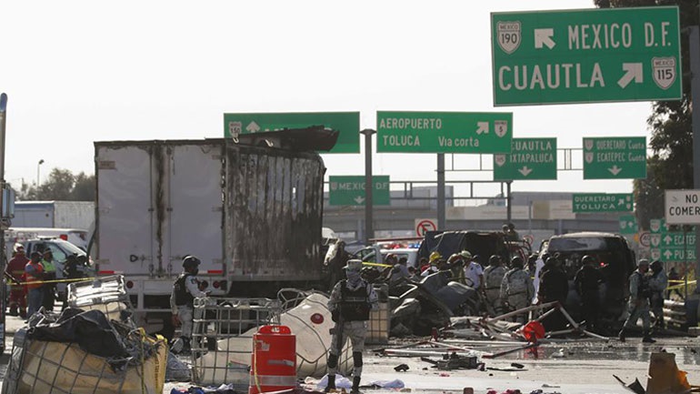 Το τροχαίο σημειώθηκε σε ένα σταθμό διοδίων κοντά στην πόλη Τσάλκο, στον αυτοκινητόδρομο ταχείας κυκλοφορίας που συνδέει την Πόλη του Μεξικού με την Πουέμπλα, 110 χιλιόμετρα νότια της πρωτεύουσας.