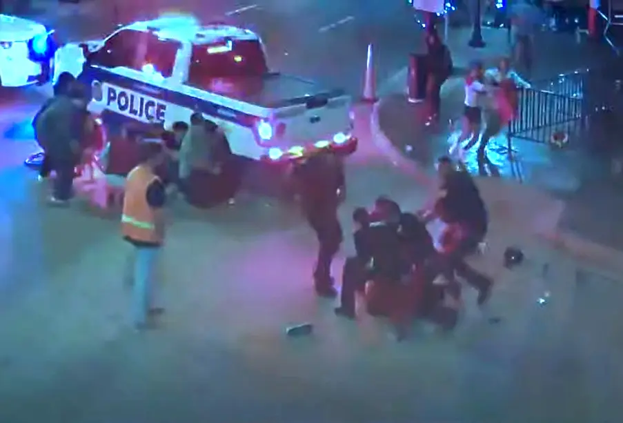 Σε ένα άλλο βίντεο από τη δεύτερη επίθεση, ο δράστης πυροβολεί εκ νέου σε μια γεμάτη από κόσμο περιοχή κοντά σε περιπολικό.