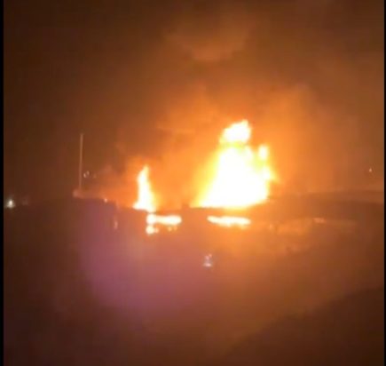 Βίντεο που κυκλοφορούν σε ιστότοπους κοινωνικής δικτύωσης, που το Γαλλικό Πρακτορείο σημειώνει ότι δεν επαλήθευσε την αυθεντικότητά τους, καταγράφουν τεράστια πυρκαγιά που μαίνεται στον τόπο της έκρηξης.