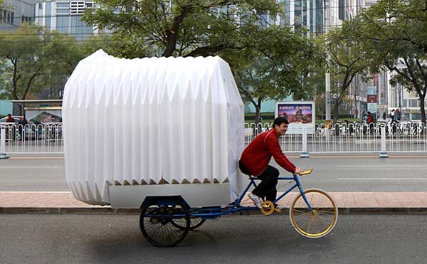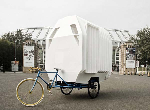 Το απίθανο κινητό σπίτι που ονομάζεται «Tricycle House», είναι εξοπλισμένο με μια ενσωματωμένη δεξαμενή νερού, κρεβάτι, τραπέζι, μπανιέρα, εγκαταστάσεις κουζίνας και μια σόμπα, κι όλα αυτά στο πίσω μέρος ενός ποδήλατου, μέσα σε μια πρωτοποριακή ελαφριά κατασκευή.