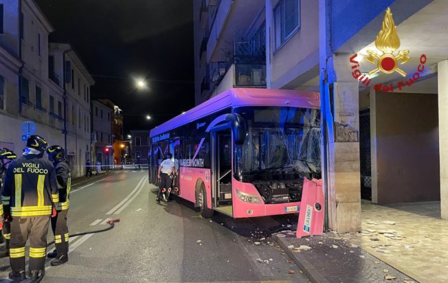 Συγκεκριμένα, σύμφωνα με τα ιταλικά ΜΜΕ το λεωφορείο έπεσε πάνω σε κολόνα σε κεντρικό σημείο της πολης.
