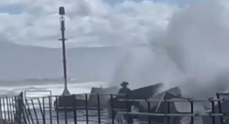 Ένα μικρό παιδί παρασύρθηκε από τα ορμητικά νερά ενός τεράστιου κύματος καθώς περπατούσε στην προκυμαία με τον πατέρα του. Λίγα δευτερόλεπτα μετά ο πατέρας βουτάει στα άγρια νερά για να σώσει το παιδί του.