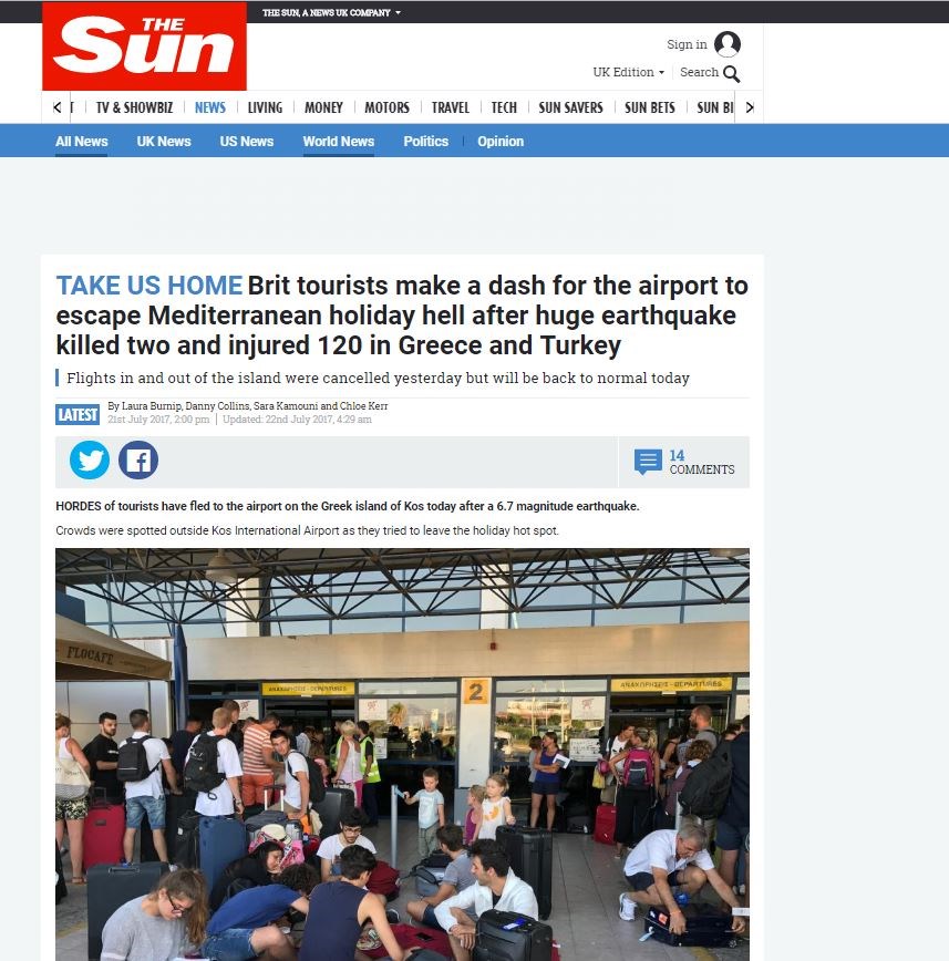 Τρομολαγνικά δημοσιεύματα βρετανικών ΜΜΕ για την Κω με εικόνες μαζικής φυγής τουριστών – ΦΩΤΟ