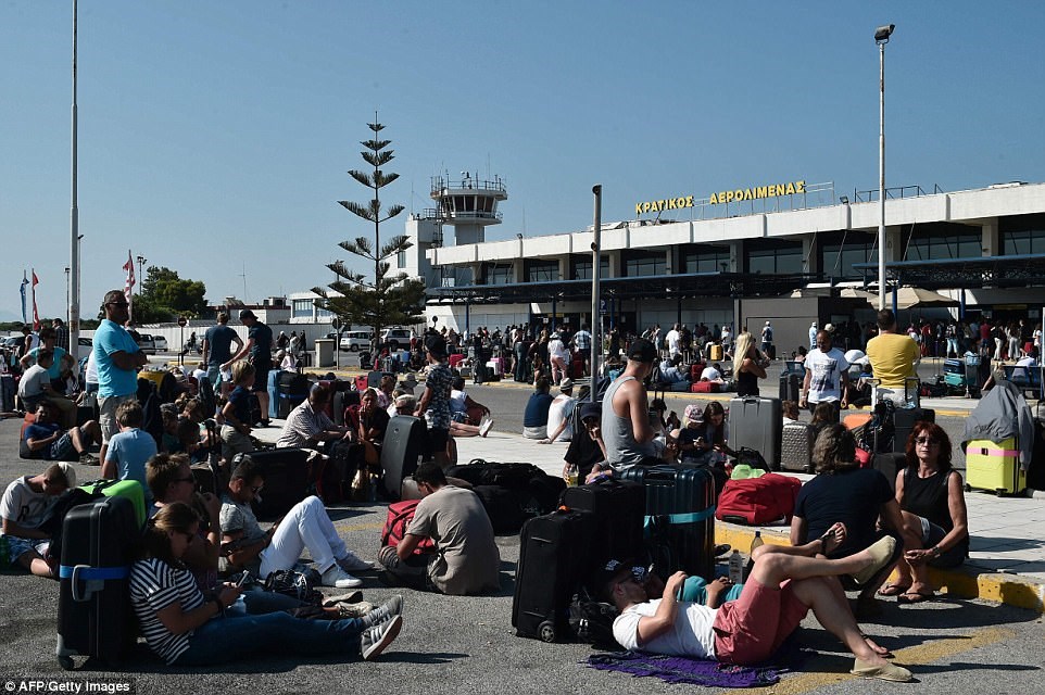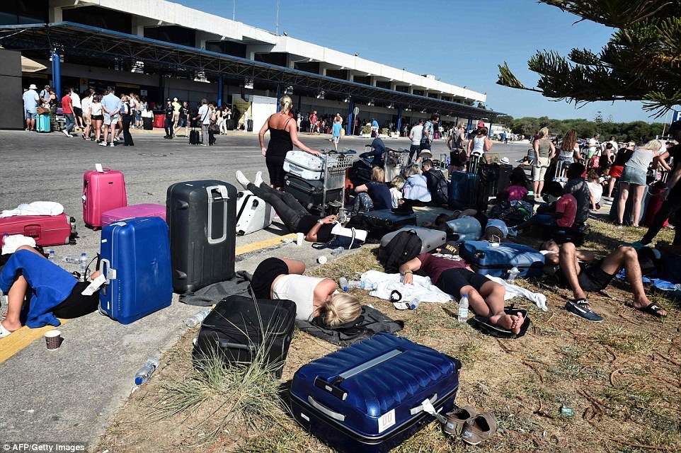 Σύμφωνα με την εφημερίδα Daily Mail, πολλοί τουρίστες με τις αποσκευές τους, κατέκλυσαν τον Διεθνή Αερολιμένα της Κω, καθώς επιχείρησαν να φύγουν από το ελληνικό νησί. Στις φωτογραφίες που δημοσίευσε η βρετανική εφημερίδα, βλέπουμε τους τουρίστες, να περιμένουν στην ύπαιθρο κάτω από τον καυτό ήλιο, αφού τους είπαν να μην πάνε πίσω στα ξενοδοχεία τους, μετά την ακύρωση των πτήσεών τους.