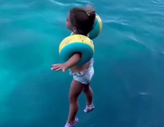 Η μικρή ήταν σε διακοπές με την οικογένεια της στην Τουρκία. Όταν ζήτησε να κολυμπήσει ένα μέλος της οικογένειας την πήρε και την πέταξε στο νερό.