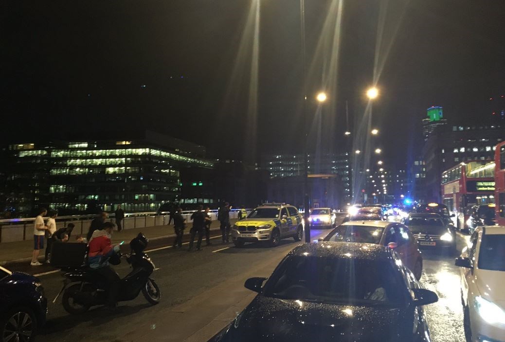 Η βρετανική αστυνομία ανέφερε ότι στελέχη της έσπευσαν στο σημείο όταν αναφέρθηκε ότι αυτοκίνητο έπεσε πάνω σε πεζούς στη Γέφυρα του Λονδίνου.