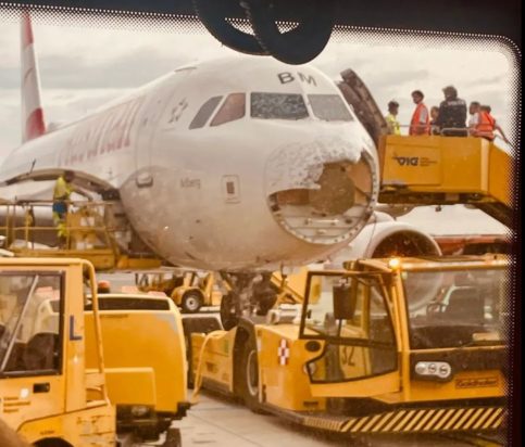 #Vienna #Austria An Austrian Airlines #A320 Reg: OE-LBM was severely damaged by a #hailstorm while on approach to #ViennaAirport in #Austria.