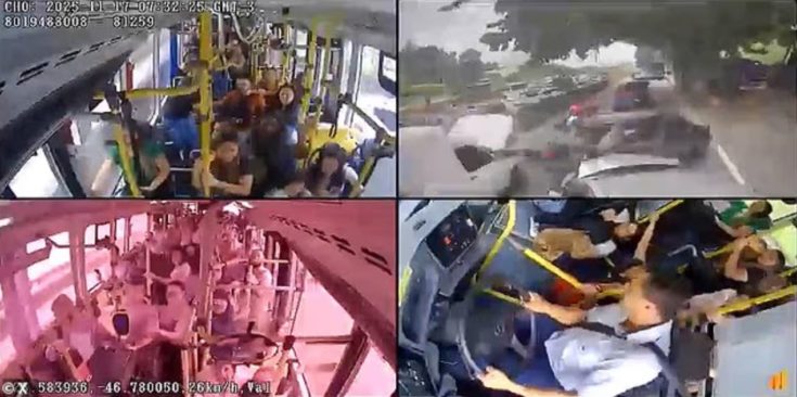Τρομακτικές στιγμές βίωσαν οι επιβάτες ενός αστικού λεωφορείου στο Σάο Πάολο της Βραζιλίας, όταν το όχημα βγήκε εκτός ελέγχου και παρέσυρε για σχεδόν ένα λεπτό δεκάδες αυτοκίνητα και μοτοσικλέτες, προκαλώντας πανικό και ουρλιαχτά στον δρόμο.