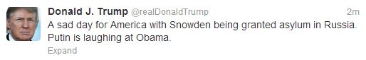 O Αμερικανός μεγιστάνας Ντόναλντ Τραμπ βρήκε ως αφορμή την υπόθεση του Έντουαρντ Σνόουντεν και τις σημερινές εξελίξεις, για να επιτεθεί στον Μπάρακ Ομπάμα.