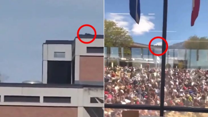 Ένα από τα βίντεο, τραβηγμένο μέσα από κτίριο του πανεπιστημίου πίσω από τη σκηνή όπου μιλούσε ο Κερκ, κατέγραψε τη στιγμή που το πλήθος των 3.000 παρευρισκομένων έπεσαν στο έδαφος, μόλις ακούστηκε ο πυροβολισμός. Στο ίδιο πλάνο διακρίνεται μια μικρή σκοτεινή φιγούρα να σηκώνεται και να κινείται στην ταράτσα απέναντι.