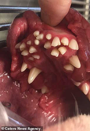 Όταν ο γιατρός όμως έλεγξε το στόμα του… κουταβιού, μέτρησε 28 δόντια περισσότερα απ’ όσα φυσιολογικά θα έπρεπε να έχει, δηλαδή 70 δόντια.
