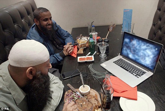 Όπως φαίνεται και στη φωτογραφία οι τζιχαντιστές φαίνεται να διασκεδάζουν με το αποτρόπαιο θέαμα απολαμβάνοντας το γεύμα τους σε εστιατόριο του Λονδίνου.