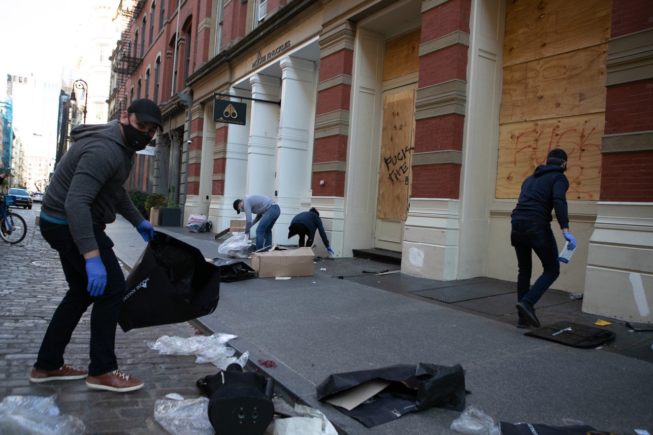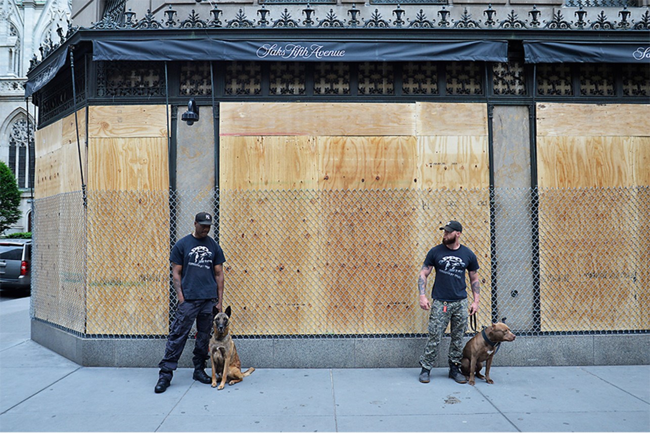 Το θρυλικό Saks Fifth Avenue συγκεκριμένα οχυρώθηκε τοποθετώντας ξύλινη επένδυση στις τζαμαρίες του, συρμάτινο περίφραγμα και άνδρες ιδιωτικής ασφάλειας με τη συνοδεία βελγικών μαλινουά, γερμανικών ποιμενικών και πιτ μπουλ, προκειμένου να κρατήσει τους επίδοξους κλέφτες μακριά από το εμπόρευμά του. Η ενίσχυση της ασφάλειας αποφασίστηκε μετά τη λεηλασία του πολυκαταστήματος Macy’s στη θρυλική πλατεία Χέραλντ. Οι φρουροί ασφαλείας θα περιπολούν μαζί με τα περίπου 7 σκυλιά που είναι ειδικά εκπαιδευμένα στην περίμετρο του καταστήματος ώστε να απομακρύνουν όποιους επιδιώκουν να εκμεταλλευτούν τις διαδηλώσεις για τον Τζορτζ Φλόιντ και να βανδαλίσουν ή να λεηλατήσουν μαγαζιά.