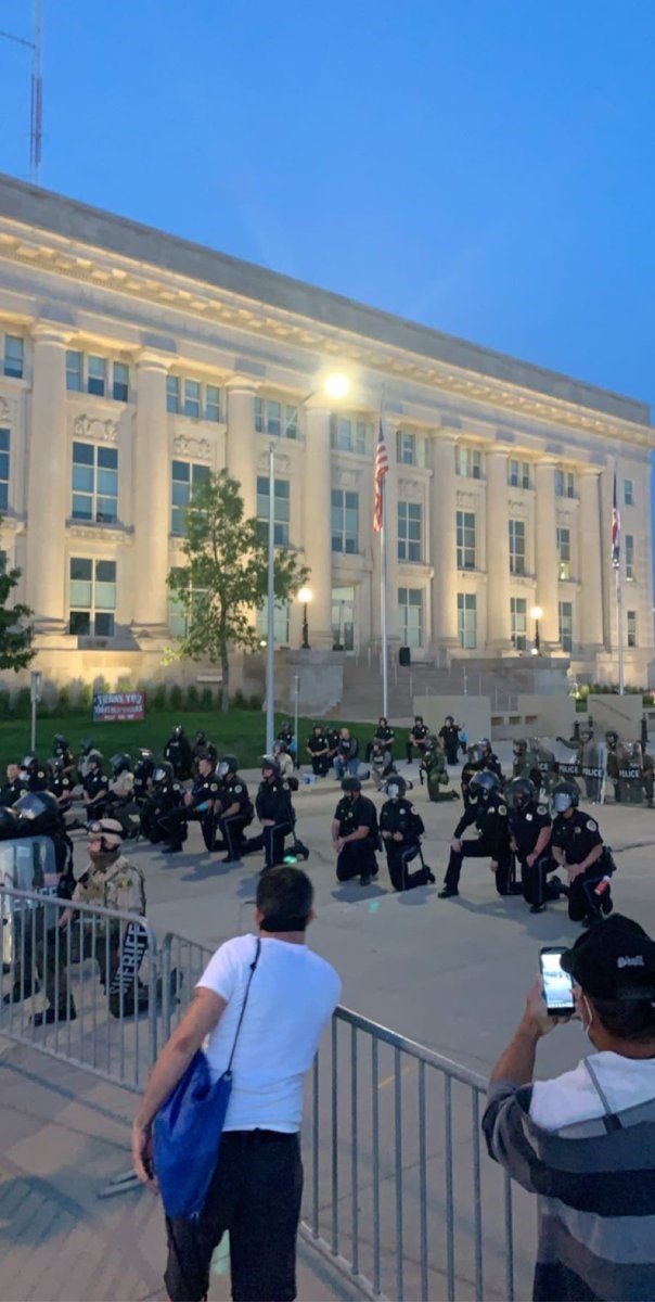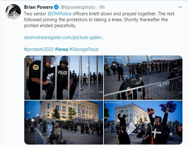 Συγκεκριμένα, στο Ντάβενπορτ της Αϊόβα, σύμφωνα με τις τοπικές Αρχές, αστυνομικοί έπεσαν σε ενέδρα από διαδηλωτές μέσα στη νύχτα. Ο αρχηγός της Αστυνομίας Πολ Σικόρσκι είπε ότι τρεις αστυνομικοί έκαναν περιπολία στην πόλη όταν έπεσαν σε ενέδρα διαδηλωτών που τους πυροβόλησαν. Μάλιστα διαδηλωτές έσπασαν και περιπολικά ενώ ένας αστυνομικός τραυματίστηκε, ενώ ο Σικόρσκι είπε ότι δεν ήξερε την κατάστασή του και πως η Αστυνομία κλήθηκε σε δεκάδες περιστατικά στην πόλη, όπου έπεφταν πυρά. Είπε ακόμη ότι τέσσερις άνθρωποι δέχτηκαν αστυνομικά πυρά εκ των οποίων οι δύο πέθαναν. Στις 12.30 μετά τα μεσάνυχτα ο δήμαρχος της πόλης εξέδωσε ανακοίνωση κατά την οποία ζητούσε από όλους τους κατοίκους να παραμείνουν σπίτι και να αναζητήσουν καταφύγιο.