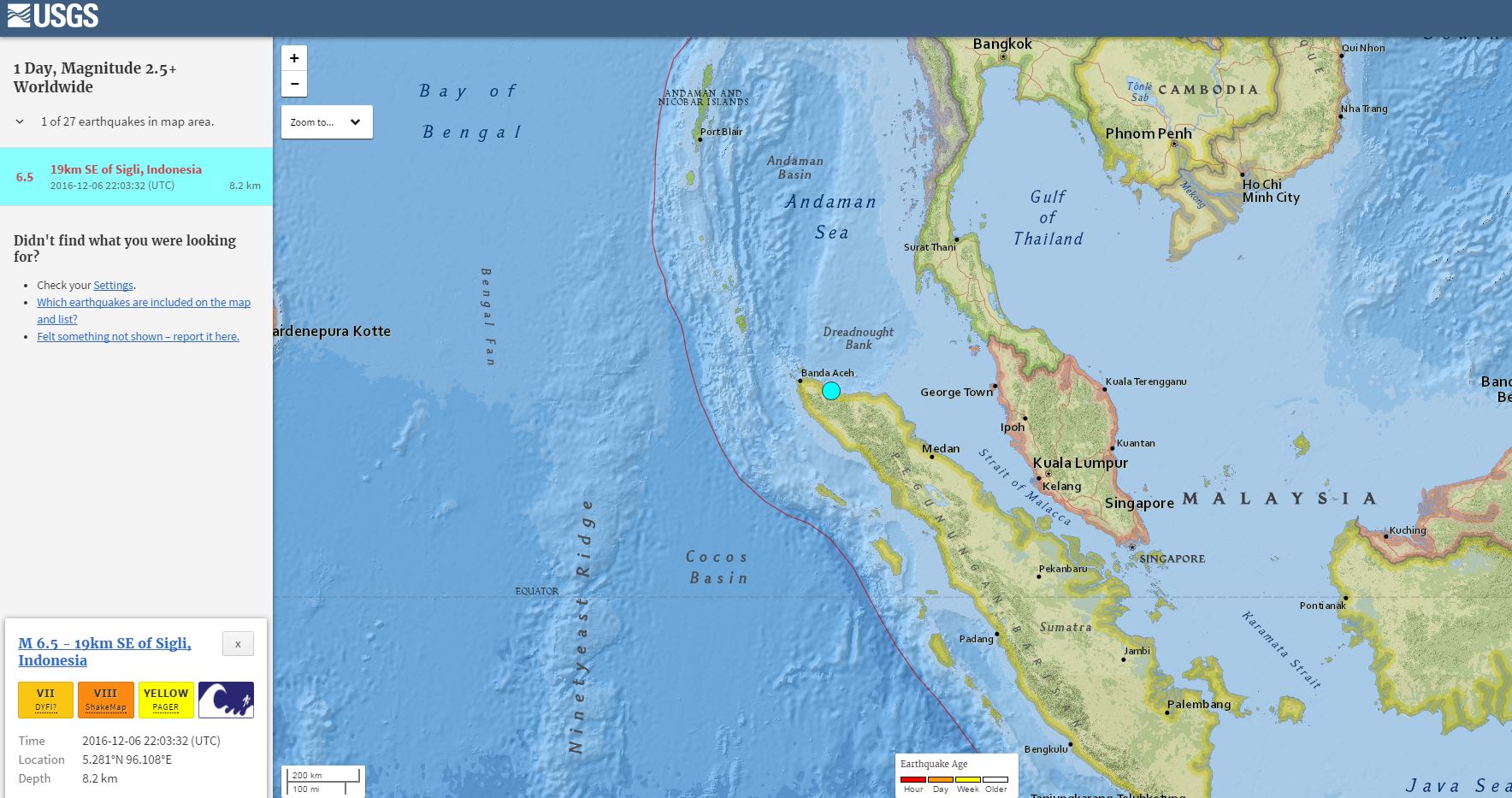 Σεισμός 6,5 Ρίχτερ έγινε 130 χιλιόμετρα νοτιοανατολικά της Μπάντα Ατσέχ, στη βόρεια Σουμάτρα, στην Ινδονησία, όπως ανακοίνωσε το Γεωλογικό Ινστιτούτο των ΗΠΑ (USGS).