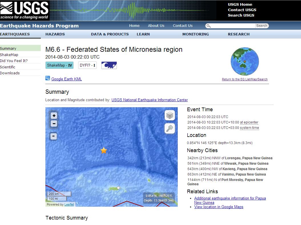 USGS: Στα 6,6R ο σεισμός στην Παπούα-Νέα Γουινέα