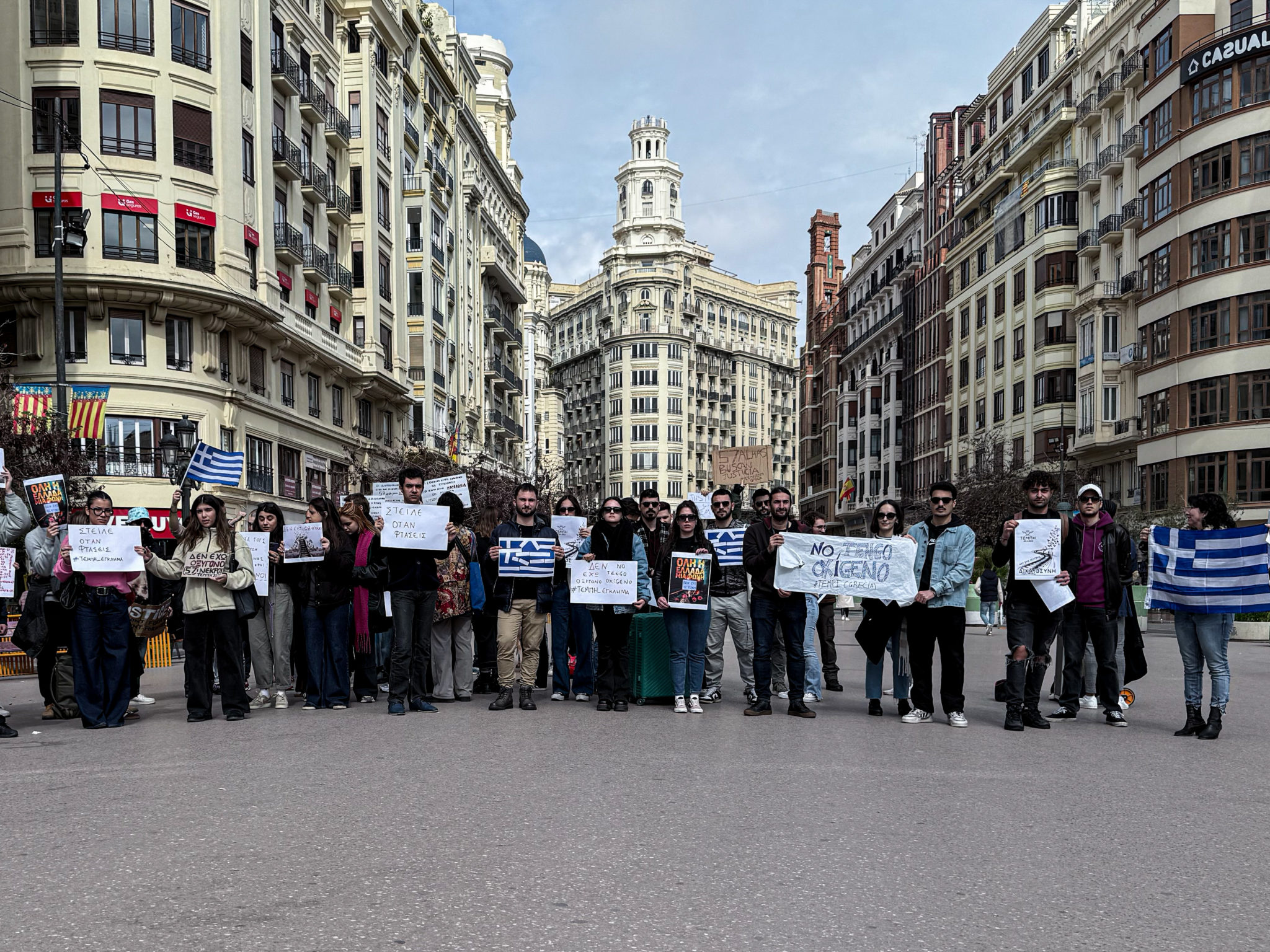 Στη Βαλένθια, μέλη της ελληνικής κοινότητας και όχι μόνο, φοιτητές αλλά και άνθρωποι μεγαλύτερης ηλικίας, συγκεντρώθηκαν για να τιμήσουν τα θύματα των Τεμπών και να απαιτήσουν δικαιοσύνη.
