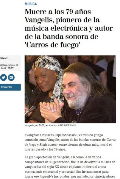 Ο σπουδαίος συνθέτης, Βαγγέλης Παπαθανασίου έφυγε από τη ζωή το απόγευμα της Πέμπτης (19/05) και τα μεγάλα ειδησεογραφικά δίκτυα του εξωτερικού, μεταδίδουν την είδηση του θανάτου του και μάλιστα στην πρώτη σελίδα των ιστοσελίδων.