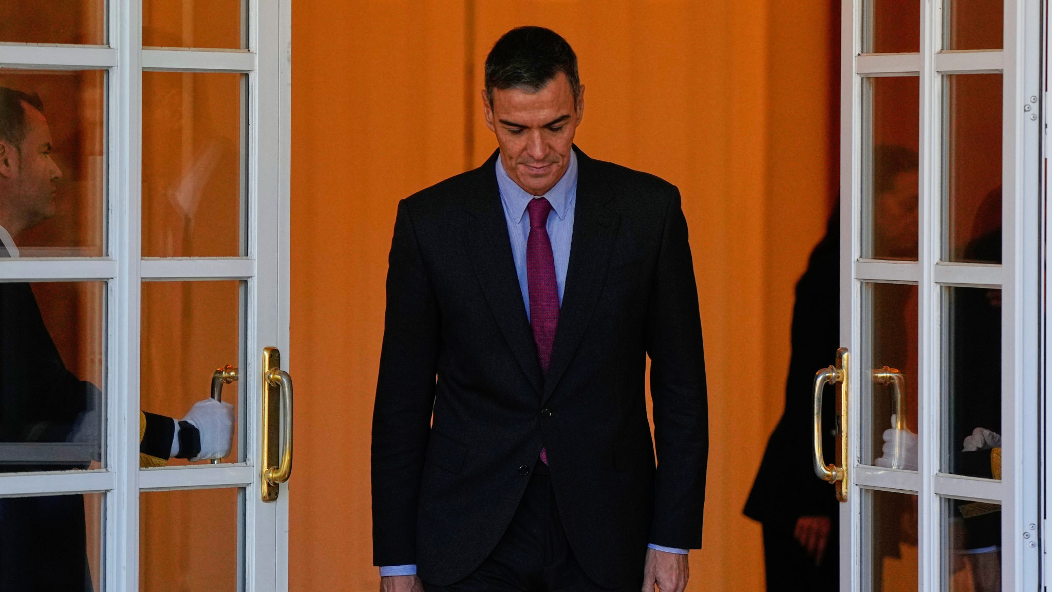 Spanish Prime Minister Pedro Sanchez arrives for a meeting with German President Frank-Walter Steinmeier at the Moncloa Palace in Madrid, Spain, Thursday, Nov. 27, 2025. (AP Photo/Manu Fernandez)