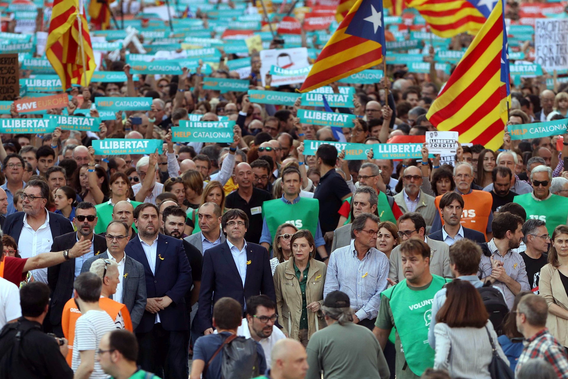 Περί τις 450.000 Καταλανοί, σύμφωνα με τη δημοτική αστυνομία, διαδήλωσαν το απόγευμα στο κέντρο της Βαρκελώνης ζητώντας την ανεξαρτησία της Καταλονίας, αφού η Μαδρίτη ζήτησε από τη Γερουσία την καθαίρεση της ηγεσίας της αυτόνομης ισπανικής κοινότητας.