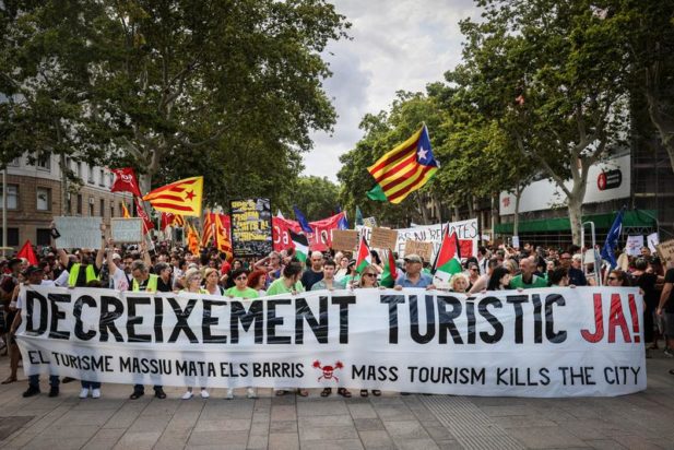 Οι πολέμιοι του υπερτουρισμού καταγγέλλουν τα αποτελέσματά του στην τιμή της στέγης -τα ενοίκια έχουν αυξηθεί κατά 68% κατά την διάρκεια της τελευταίας δεκαετίας, σύμφωνα με τον δήμο της Βαρκελώνης – αλλά επίσης τις συνέπειές του στα τοπικά καταστήματα, στο περιβάλλον ή στις συνθήκες απασχόλησης των ντόπιων.