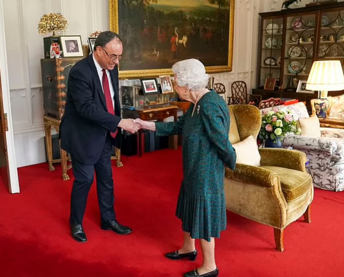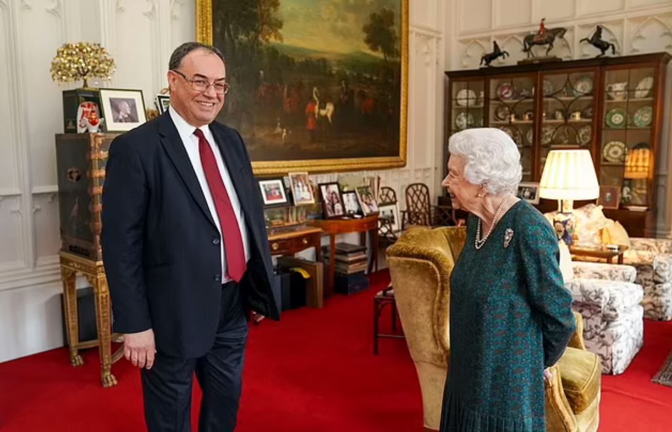 Σήμερα η βασίλισσα δέχθηκε στο Κάστρο του Ουίνδσοορ τον διοικητή της Τράπεζας της Αγγλίας. Η ίδια εμφανίστηκε χαμογελαστή και ευδιάθετη.