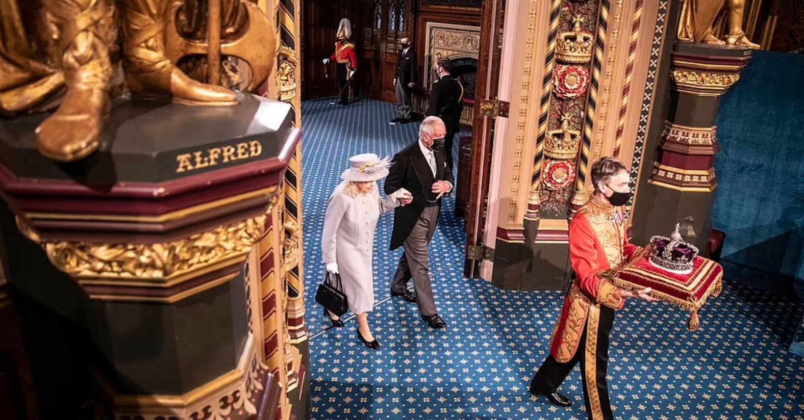 Ο θρόνος πλέον ήταν μόνο για ένα άτομο και εκεί κάθισε μόνη της η Ελισάβετ, ενώ ο Κάρολος και η Καμίλα κάθισαν πιο δίπλα, σε έδρες της Βουλής. Η βασίλισσα ανακοίνωσε όπως κάθε φορά τη νομοθετική ατζέντα της κυβέρνησης.